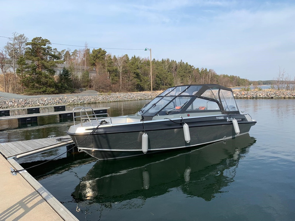 Yhdellä omistajalla ollut, keväällä 2019 käyttöönotettu ja erittäin hyvin pidetty kuomullinen Buster Magnum ja Yamaha F200 moottori.