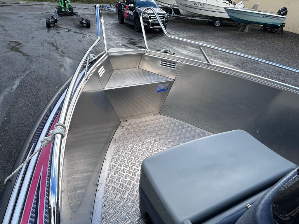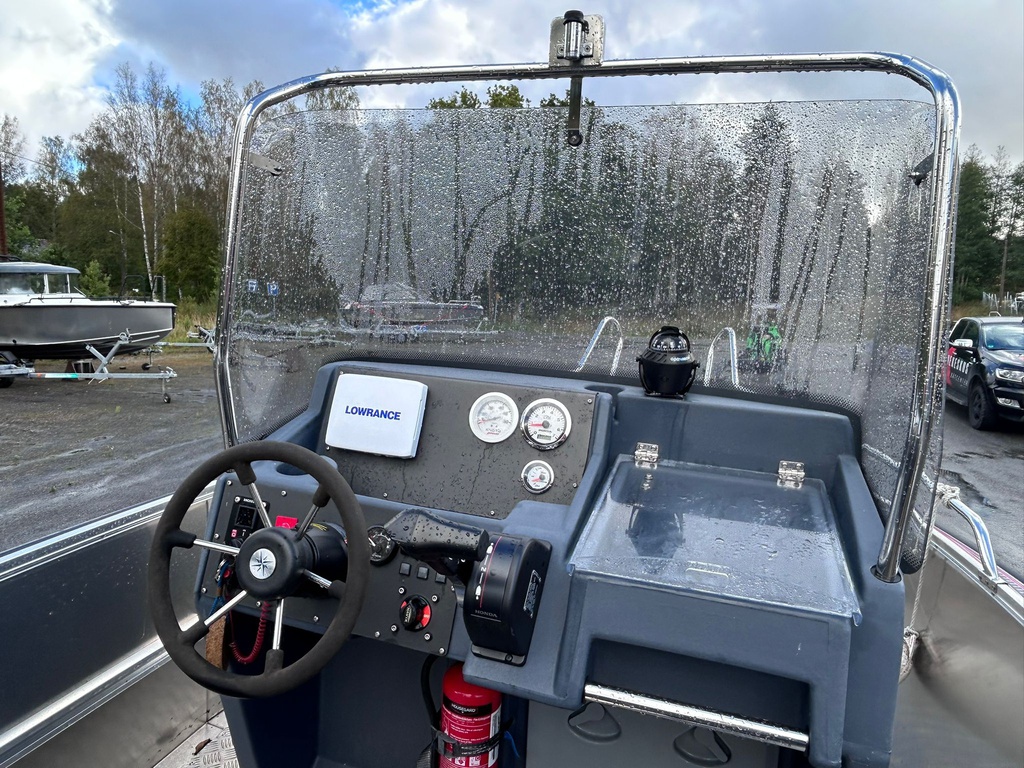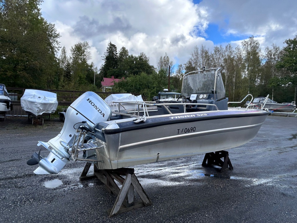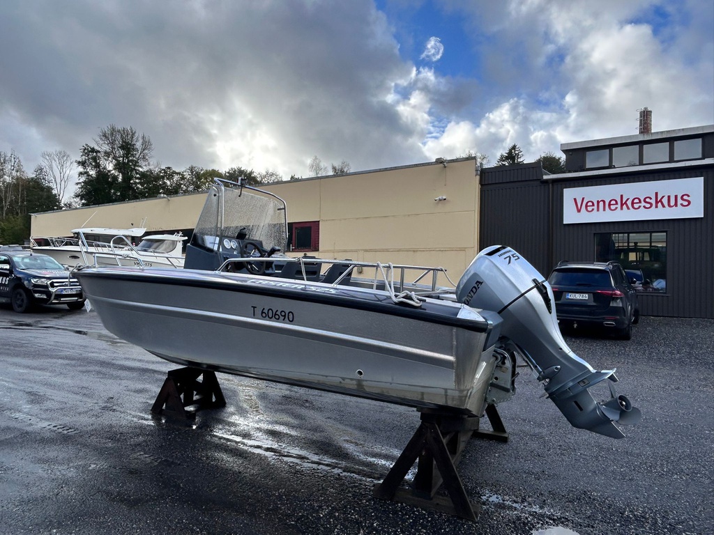 Todella siistikuntoinen ja vähän käytetty Faster 525 vuodelta 2013, varustettuna luotettavalla Honda BF75 -perämoottorilla (75 hv, nelitahti).