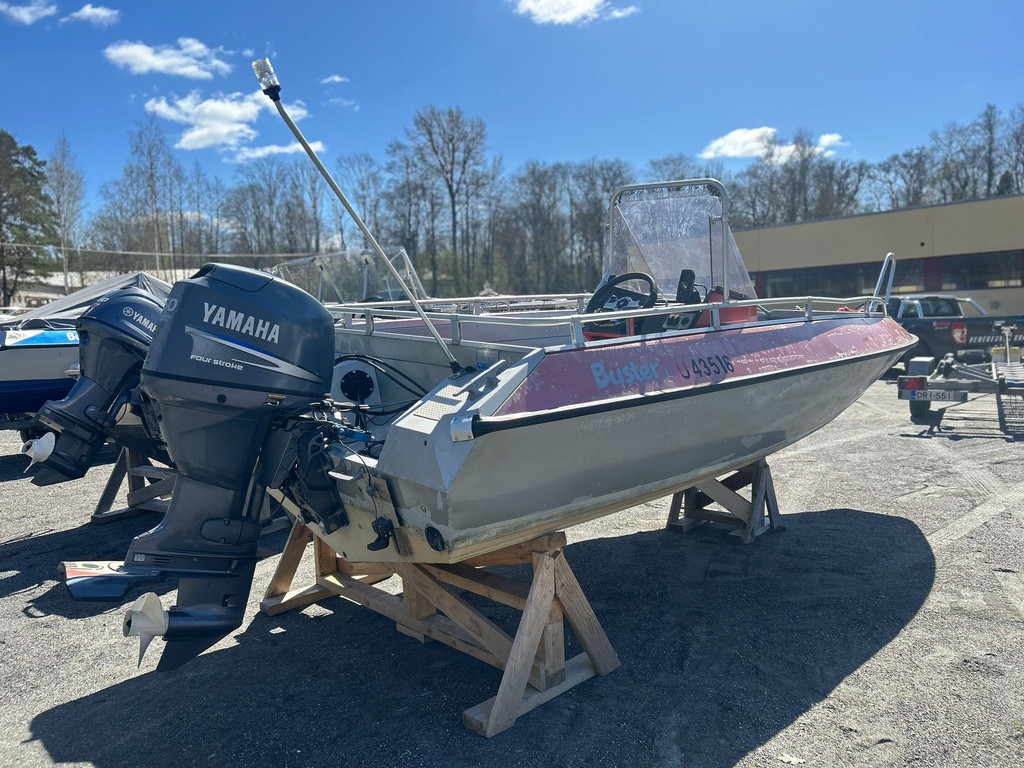 Säännöllisesti huollettu Buster L, hyvä kalastusvene vapalaatikolla ja kaikuluotaimella.