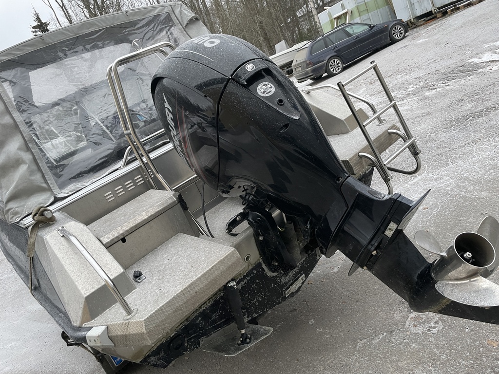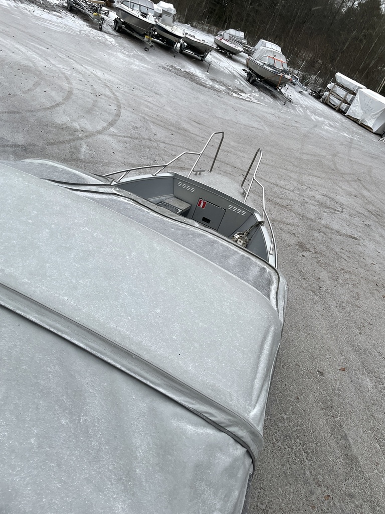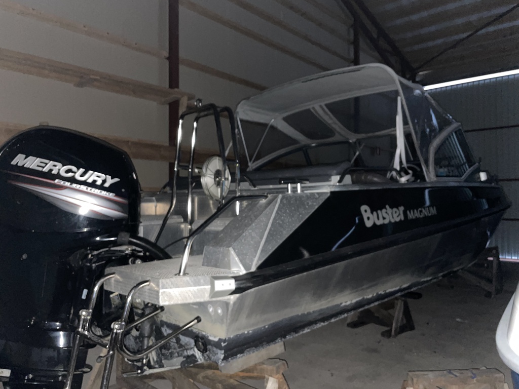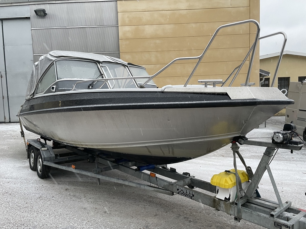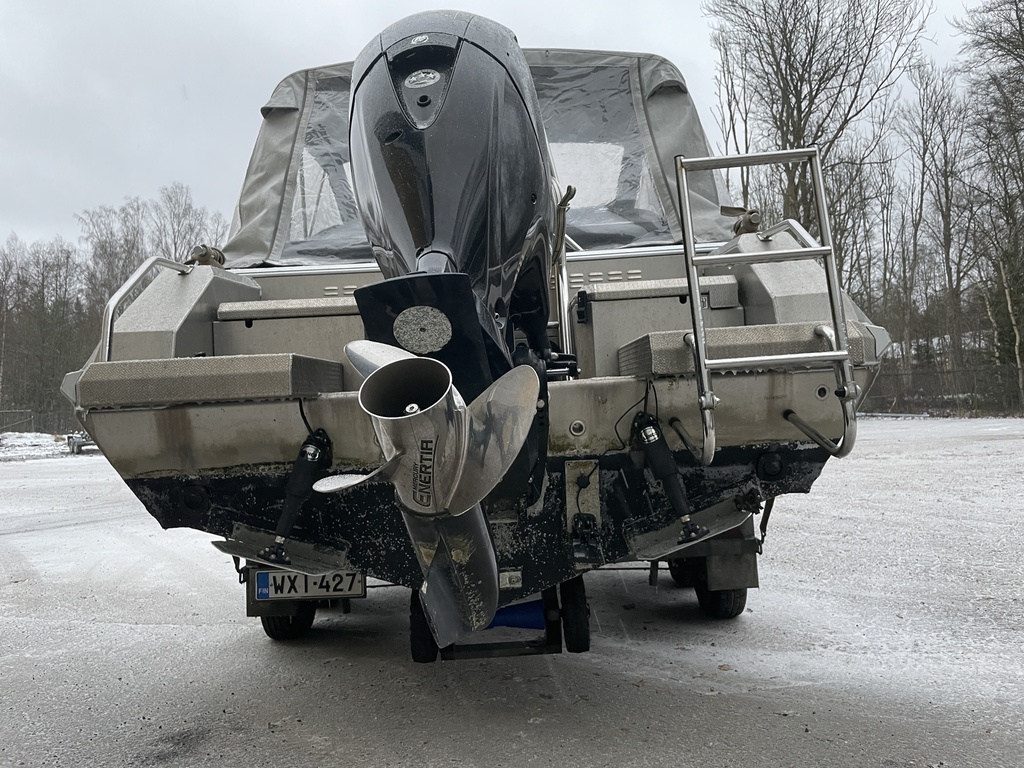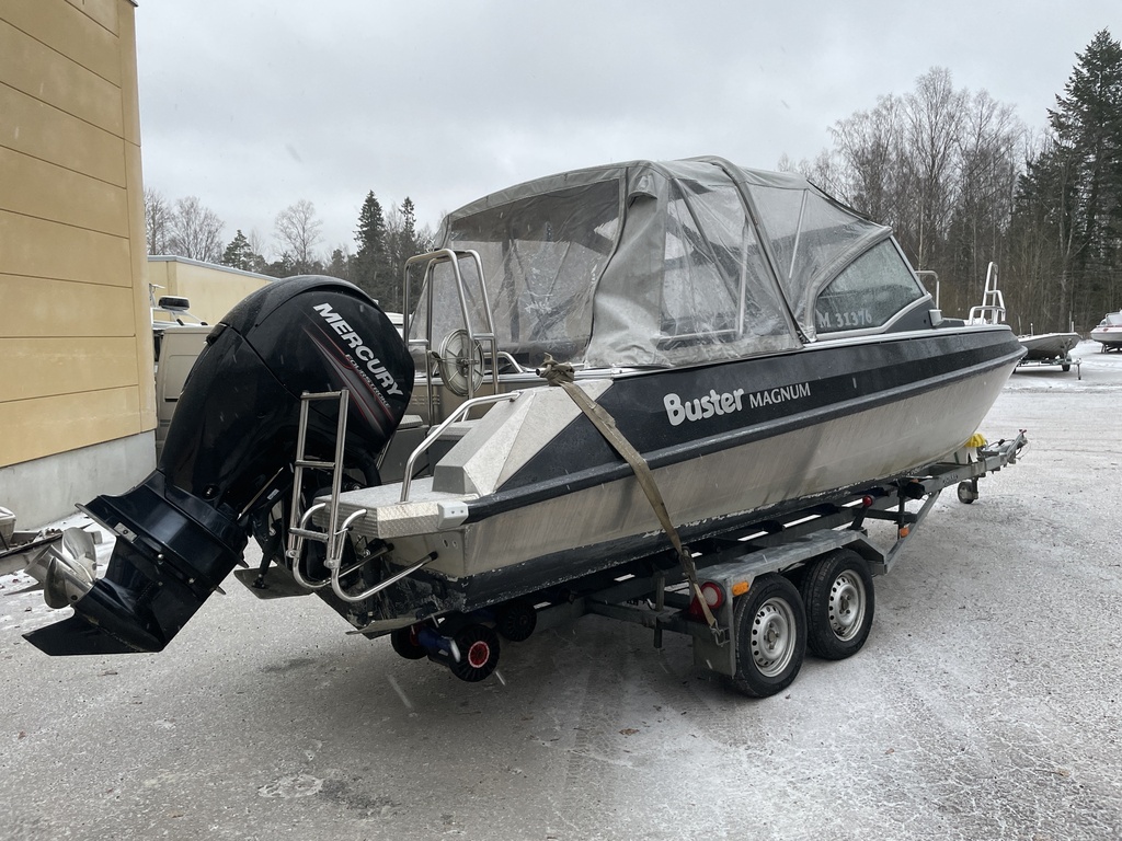 Yhteysveneenä ollut siisti Magnum, joka on säännöllisesti huollettu. Mukaan tulee uudet täysin uudet istuinpäälliset. Veneessä on myös satamapeite.