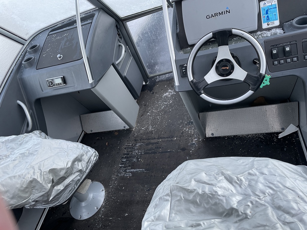 Korjaamme pressun takaikkunan parasta aikaa ja vene on talvisäilytyshallissa.