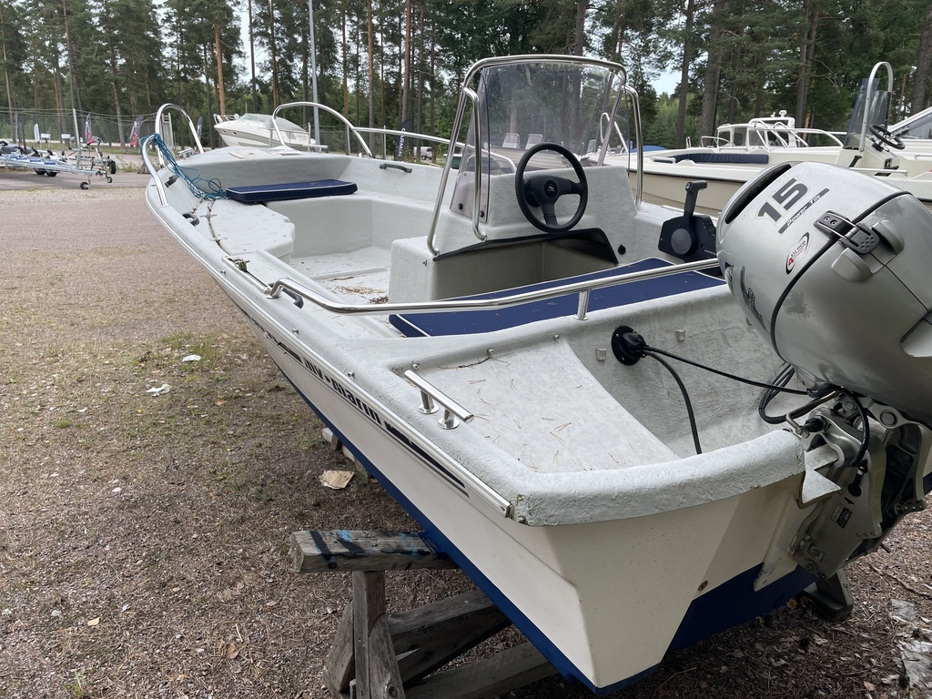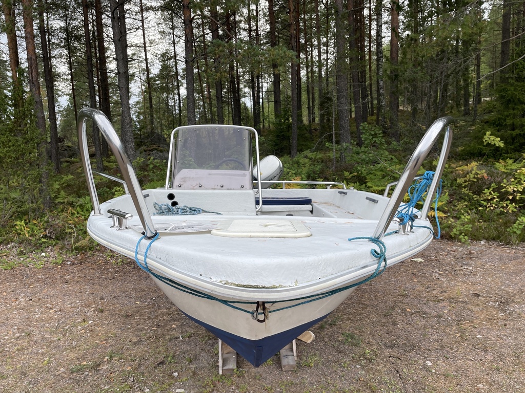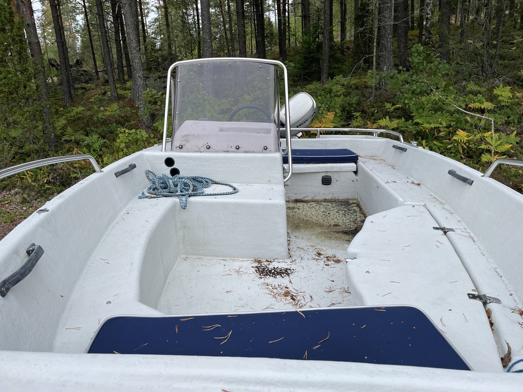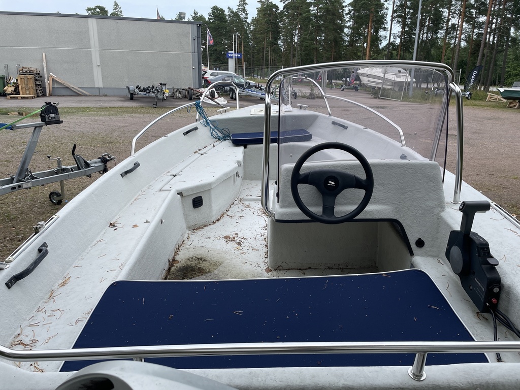Kalastukseen ja mökkiveneilyyn erittäin sopiva tuulilasi+ratti vene, jota saa ajaa koko perhe.