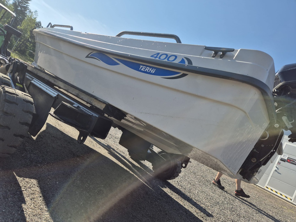Pulpettiversio Terhin suositusta mökkiveneestä Terhi 400. Vuosimalli 2014, ja todella hyväkuntoinen ikäisekseen. Perässä samanikäinen ja yhtä hyväkuntoinen15 hv:n Tohatsu.