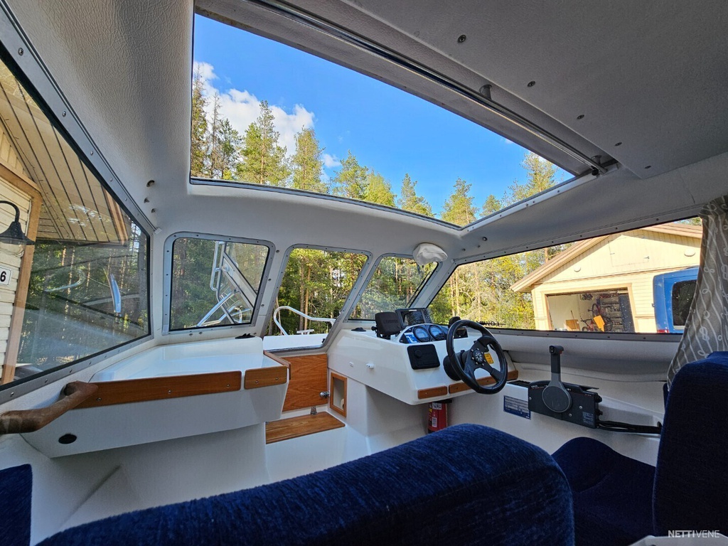 Erinomainen retkivene myös huonommassa säässä. Hyvät ajettavuusominaisuudet suurista ikkunoista avautuvalla hyvällä näkyvyydellä,