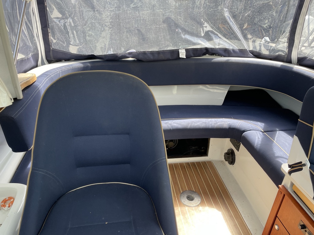 Uusi potkuri, sinkit vaihdettu (perä ja trimmit) ja pohjassa uusi myrkkymaali. Veneen moottori on ollut 2021-22 talvella Nauvossa moottorirempassa, mm uusi laturi, akut, kaasarin putsaus, suodattimet öljyt. Vene ei ole ollut vesillä 2022. Siisti pressu. On ihan sisti vehje, tervetuloa tutustumaan veneeseen! Glykolit ajettu ja hienosti kävi kone.