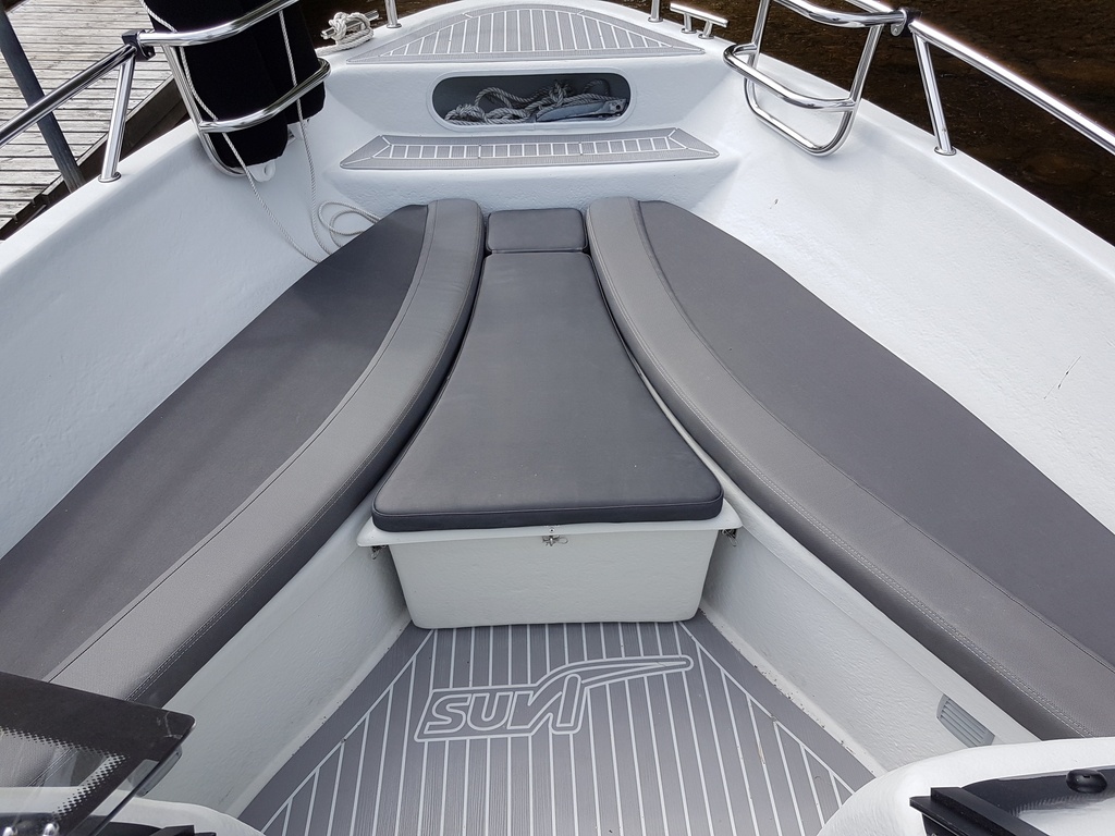 Suvi 57 Duo Fisher är designad för fiskare, en kapelltäckt trolling/fiskebåt med dubbelpulpet. Fisher har samma utmärkta skrov och köregenskaper som grundmodellen 57 Duo. Löstagbara hörnelement i baksätet ger ännu mer öppen yta baktill och gör det lätt att röra sig i fiskesammanhang. Som extra utrustning multifunktionellt skyddande tvådelat kapell. Två långa förvaringsutrymmen för till exempel spön. Fördäcket är fast utan lucka. Främre förvaringsutrymme finns via öppningen i den främre sitsens ryggstöd. Det är lätt att bulta igenom exempelvis en frontmotor på fördäck, ankringsfunktion. För frontmotorns kablar finns färdiga rör från fören till det bakre utrymmet under mellandäck. Till förens öppna utrymme finns som extra tillbehör en löstagbar förvaringsbox som samtidigt fungerar som hjälpyta vid kastfiske och som plats för solbad vid rekreation samt till och med som fisksump. Tekniska data samma som för modellen Suvi 57 Duo.