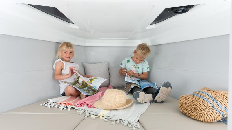 (kapell, vindrutetorkare BB, bord, solbädd, entertainment, vattenskidsbåge, trimplan, kylskåp, dubbelbatterisystem)