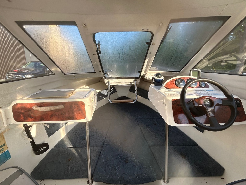 Hyvässä kunnossa vene mutta kuomu on vaihtokunnossa.