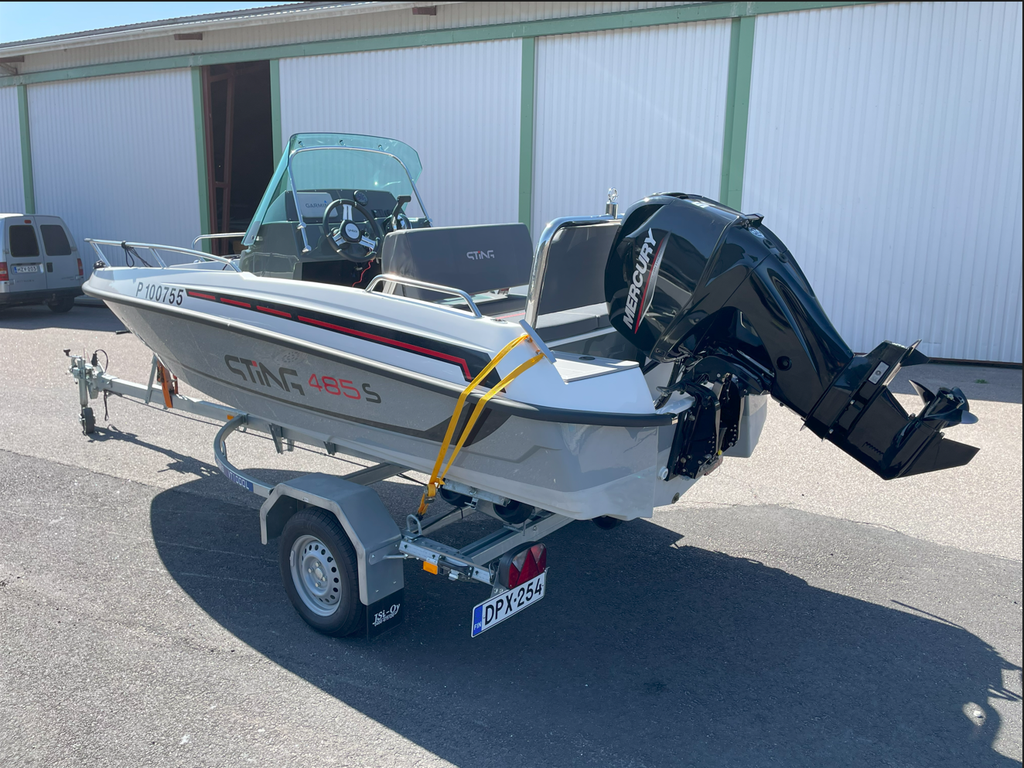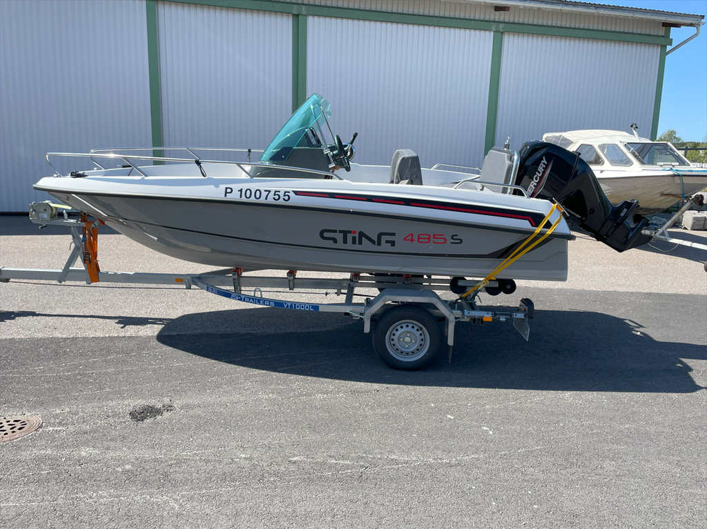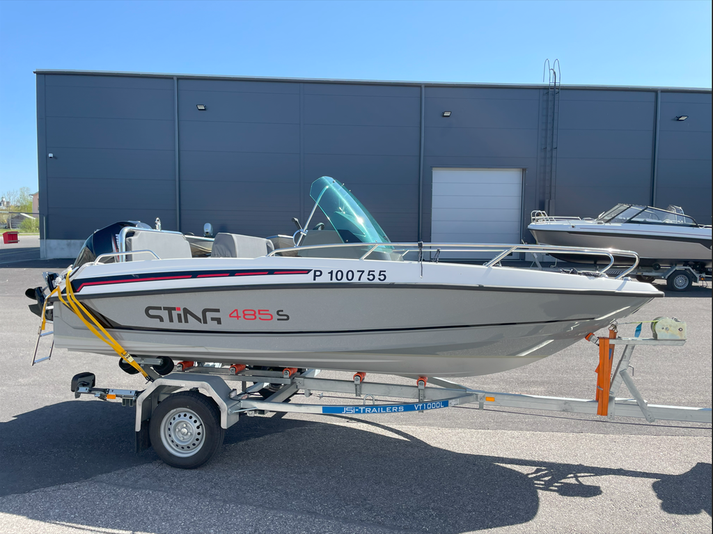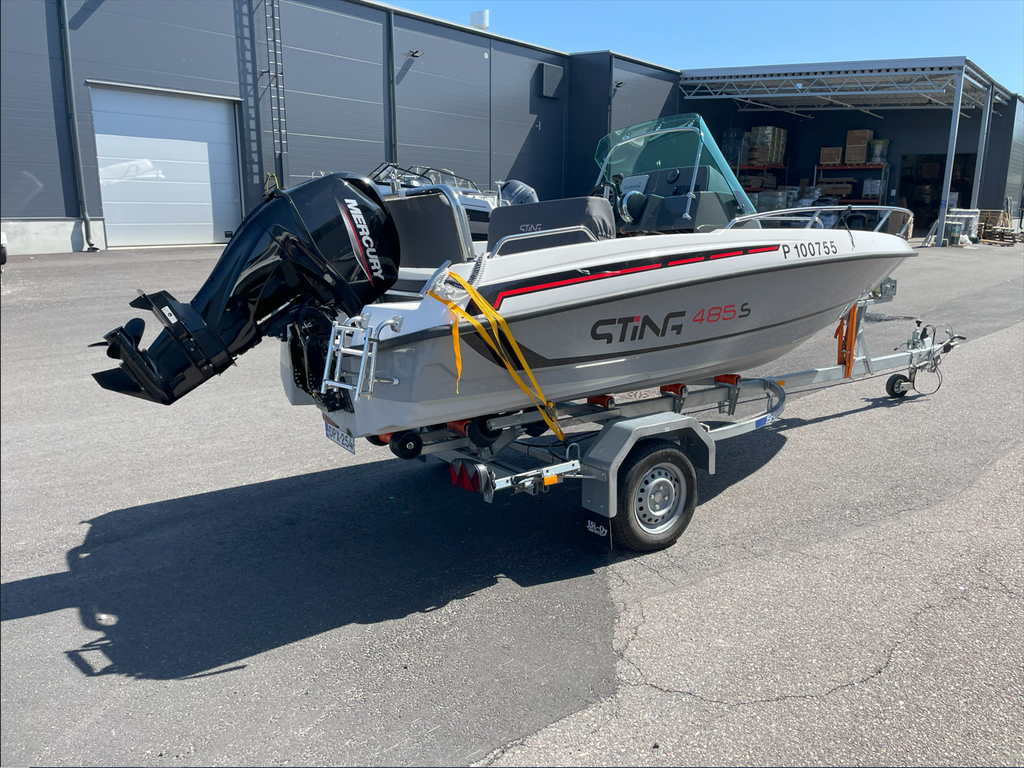 Uudenveroinen Sting 485 ajettu ainoastaan 13tunita. Syksyllä tehty 20h huolto eikä ajettu sen jälkeen. Kuvassa oleva traileri myydään erikseen hinta 1200€